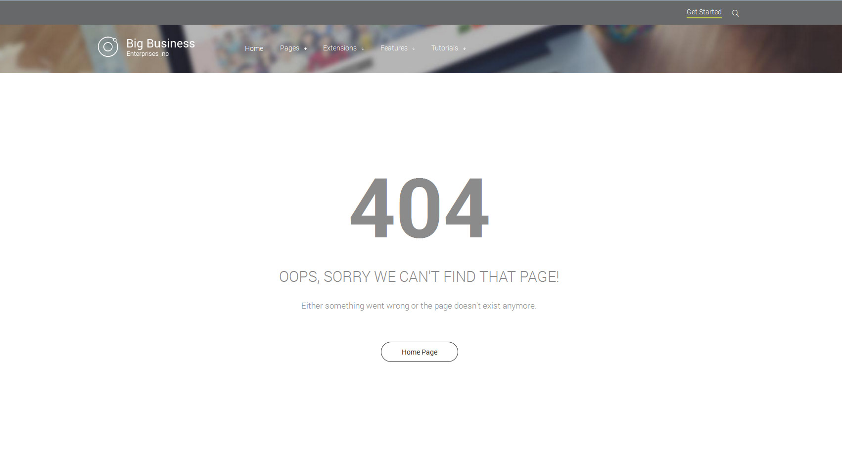 This design comes with a matching 404 page for users who reach an unrecognized site url. Below is a screenshot of that link or you can see it live here.